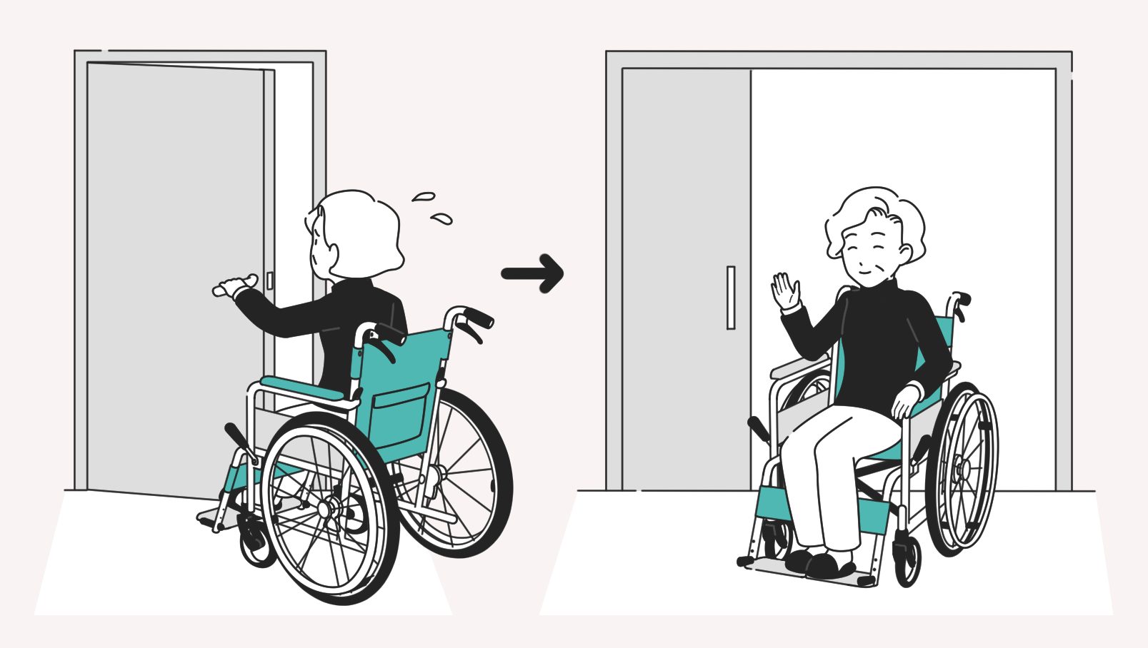 握りにくいドアノブの交換や、ドアを完全に取り外し開放する際も対象となります。